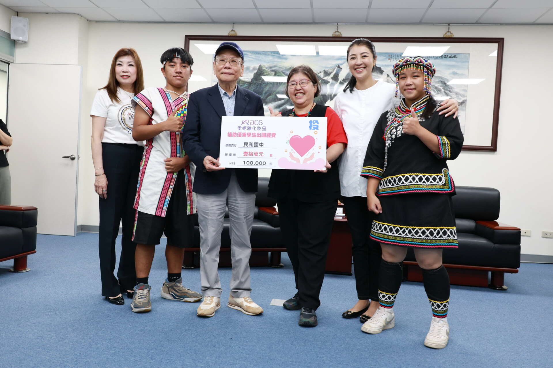 許縣長也表示,中寮鄉至誠國小雖然只有32位學生,但在鄧秀珍校長帶領及老師用心指導下,於「2024世界機關王大賽台灣賽」全國賽近千名參賽者組成297支隊伍競爭中脫穎而出,勇奪GM機關設計國小基礎組第2名,8月將代表台灣到印尼參與世界賽;民和國中濁岸合唱團在蔡秋菊校長及歷任校長與老師們用心指導下,自105年迄今,在歷次競賽中,表現傑出,不僅多次勇奪原住民語及東南亞語雙料冠軍,更是特優常勝軍,也成為全國賽的種子隊伍,將於暑假7月前往新加坡參加2024年國際合唱節大賽進行國際交流。至誠國小及民和國中都是偏鄉學校,出國經費籌措不易,此次愛妮雅化妝品集團於捐助款中勻撥10萬元給民和國中,挹注新加坡參賽經費;COCO都可茶飲公司也於捐助款中勻撥10萬元給至誠國小,挹注參加印尼世界賽經費。2校都希望藉由本次捐贈及縣府的補助能給予學校部分資助將南投科技資訊軟實力及布農族的天籟美聲,傳遞到全世界,讓偏鄉的孩子也能在世界舞台發光發熱。