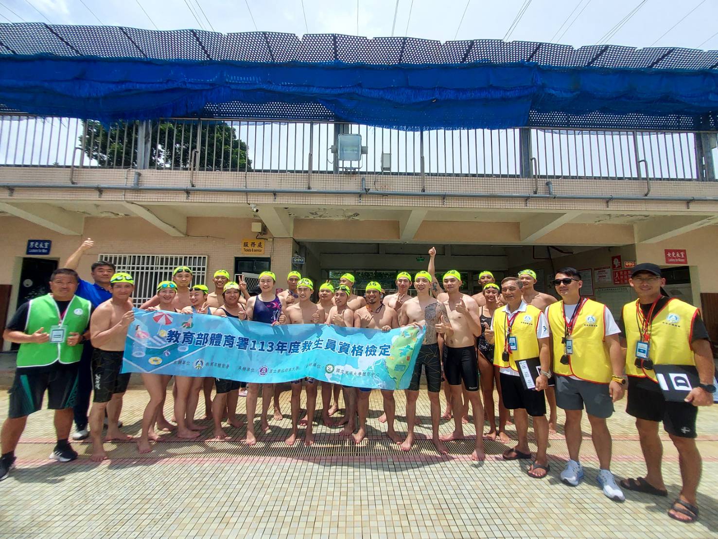 其中學員最年長的60歲蔡金福大哥、游泳能力再短短1個半月,從9分36秒進步到考試標準6內分,並考科全項通過,取得證照驚人成績,讓大家刮目相看。