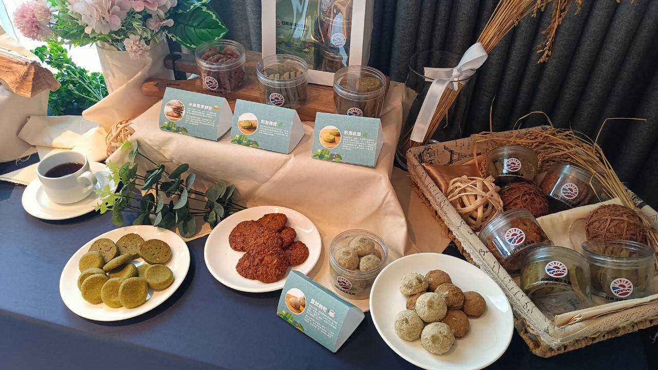 由世界麵包冠軍王鵬傑領軍,推出四款獨具風味的手工甜點,每一款都融入了邵族傳統特色食材。《雪球餅乾》結合日月潭紅玉紅茶(台茶18號),口感酥鬆、茶香馥郁;《小米燕麥餅乾》使用邵族傳統小米與健康食材,兼顧營養與美味;《刺蔥乳酪餅乾》將邵族的刺蔥與濃郁的乳酪完美結合,風味豐富;《刺蔥檸檬餅乾》以清新的檸檬香氣搭配奶油餅乾與刺蔥,回味無窮。每一款甜點不僅滿足味蕾,更傳遞出邵族文化的深厚底蘊。