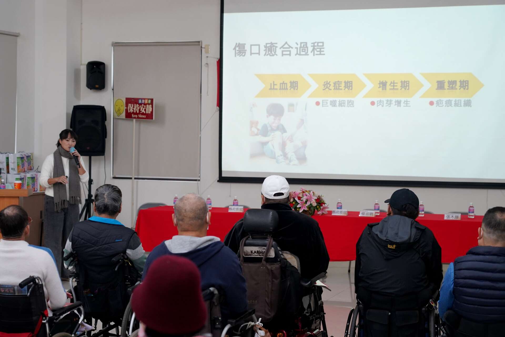 傷友受限於行動不便,就醫往往是一大工程,且常面臨神經性膀胱與壓瘡等棘手併發症。本次義診團隊陣容堅強,特別針對傷友需求規劃。泌尿科由張天佑醫師坐鎮,針對傷友常見的排尿障礙、尿路感染與導尿問題提供專業諮詢與超音波檢查;中醫科則由洪正君醫師與陳相如醫師提供針灸與脈診服務,透過中西醫合療模式,藉由中醫調理舒緩肢體僵硬與神經疼痛,全方位改善傷友生活品質。現場亦安排傷造口護理師張華茹衛教講座,協助解決傷友最為困擾的褥瘡照護難題。